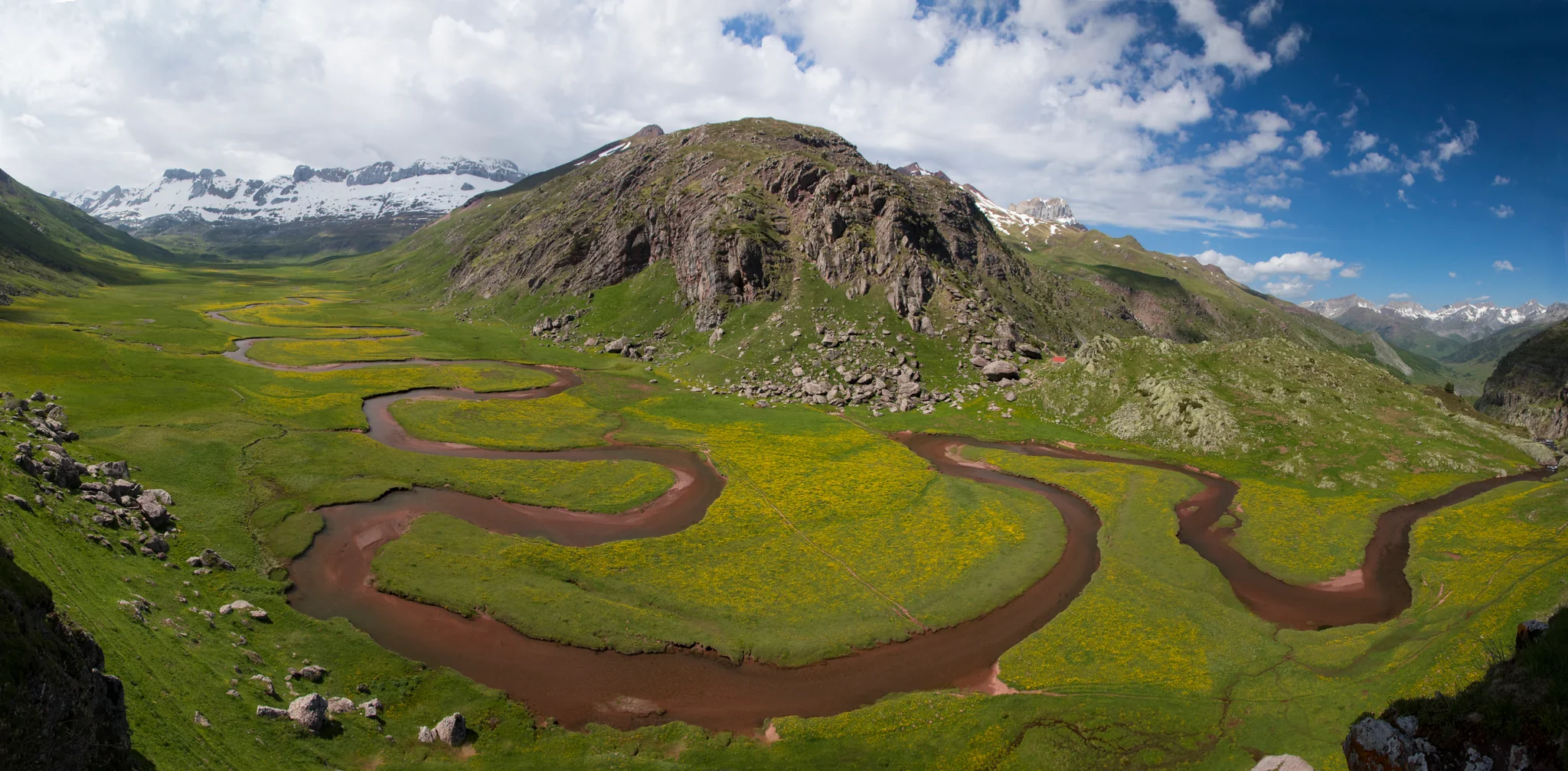 El Valle de Hecho, en el corazón del Pirineo Aragonés, acoge el río Aragón Subordán rodeado de densos bosques fluviales y montañas imponentes. Un cambio total de escenario respecto a las estepas de Monegros: aquí predominan la humedad, el verde intenso y la naturaleza salvaje de montaña.